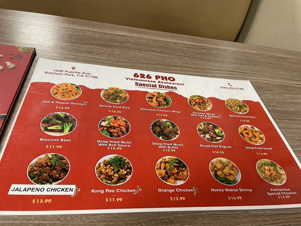 626 PHO offers a diverse menu featuring Chinese, Vietnamese, and sandwich options. Located in Baldwin Park, CA, this Asian-owned restaurant provides delivery, takeout, and many vegetarian dishes. Known for their aromatic noodle soups like House Special Pho and flavorful appetizers like Spring Rolls and Deep Fried Tofu, 626 PHO aims to satisfy every palate. Customers rave about the light and flavorful broth, quick service, and fresh, quality ingredients. The ambiance is quiet and relaxed, perfect for enjoying a meal without feeling rushed. With compostable containers and plastic-free packaging, 626 PHO also prioritizes sustainability. Don't miss out on experiencing the best pho in the 626 area at 626 PHO.